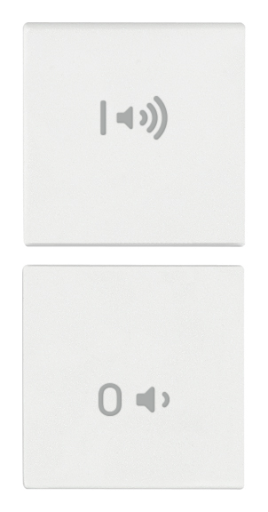 Two interchangeable half-buttons, I/O volume symbol, 1 module, white
