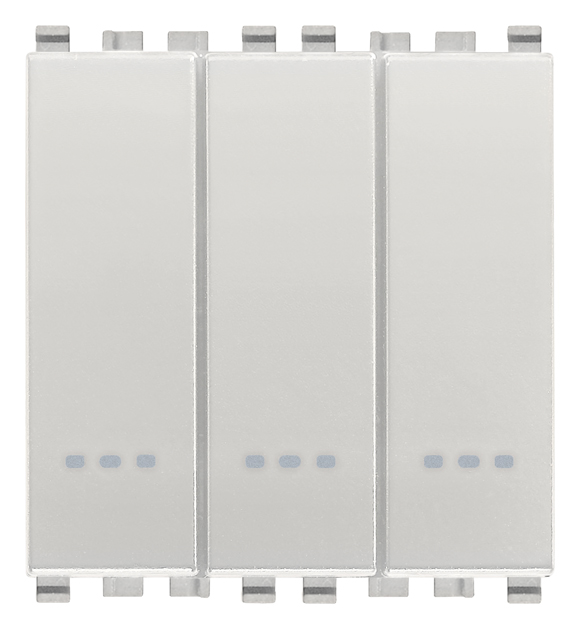 Three 1P 20 AX 250 V~ 2-way switches, Next – 2 modules. Max 250 W for self-ballasted lamps (IEC 60669-1:2017)